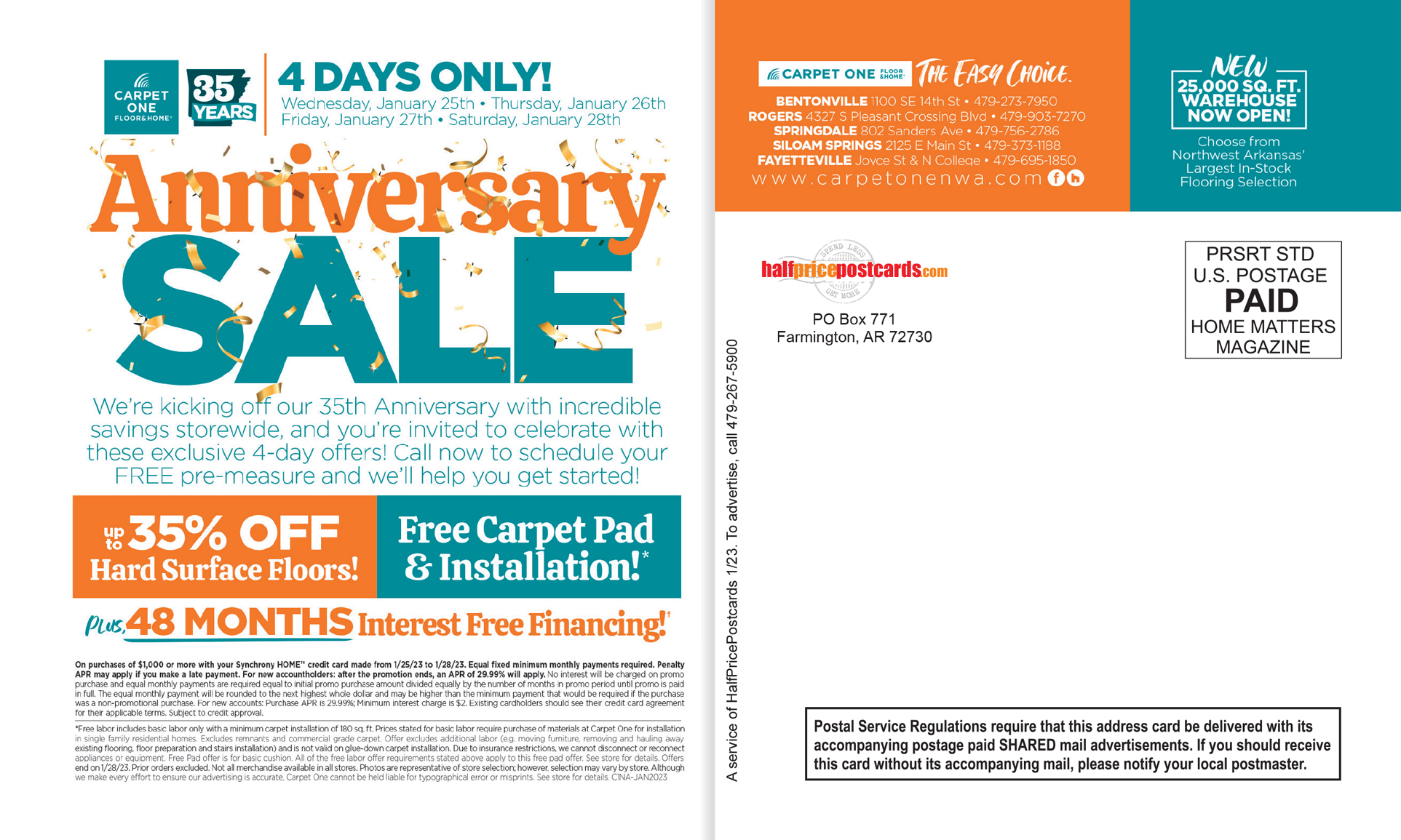 We provide a stand-alone postcard DESIGNED, PRINTED, AND MAILED for about half the cost of most postcards.